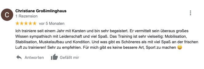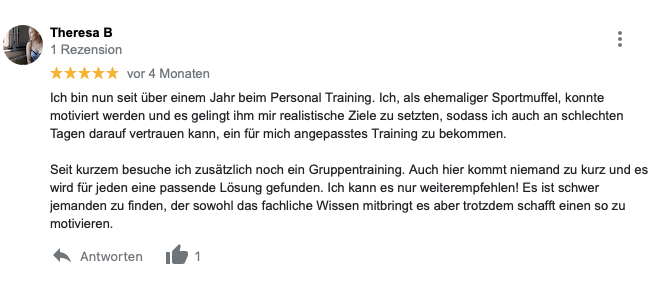 Lass mich auch dich motivieren mehr Spaß und Freude an Bewegung und Sport zu bekommen. Durch ein gezieltes Training wachsen meine Klienten über sich hinaus und sind selbst überrascht, was sie leisten können! Ich freue mich auch schon bald mit dir ins Training zu starten.