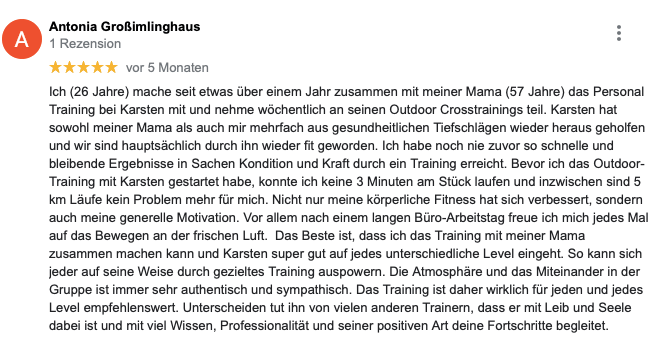 Alle weiteren Informationen bekommst Du von mir per E-Mail zugeschickt, sodass wir ein erstes Treffen oder Telefonat vereinbaren können.